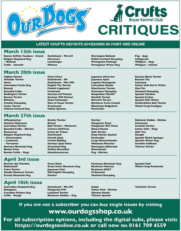 Take out a subscription and never miss an issue!Visit the Our Dogs Subscription Site -